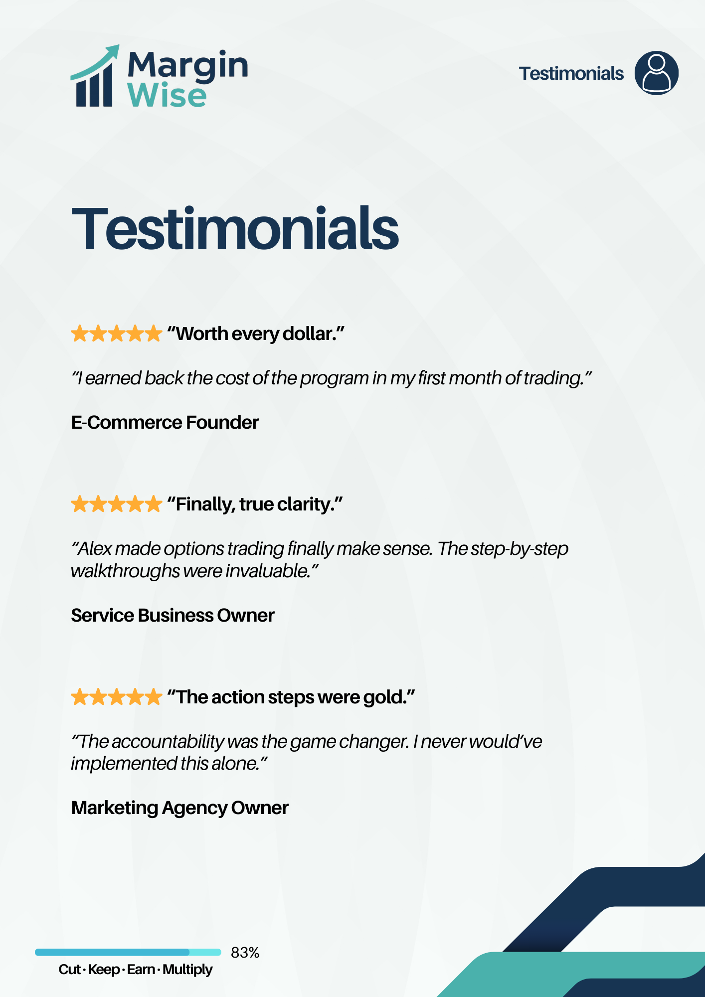 - Weekly accountability + ongoing trade reviews